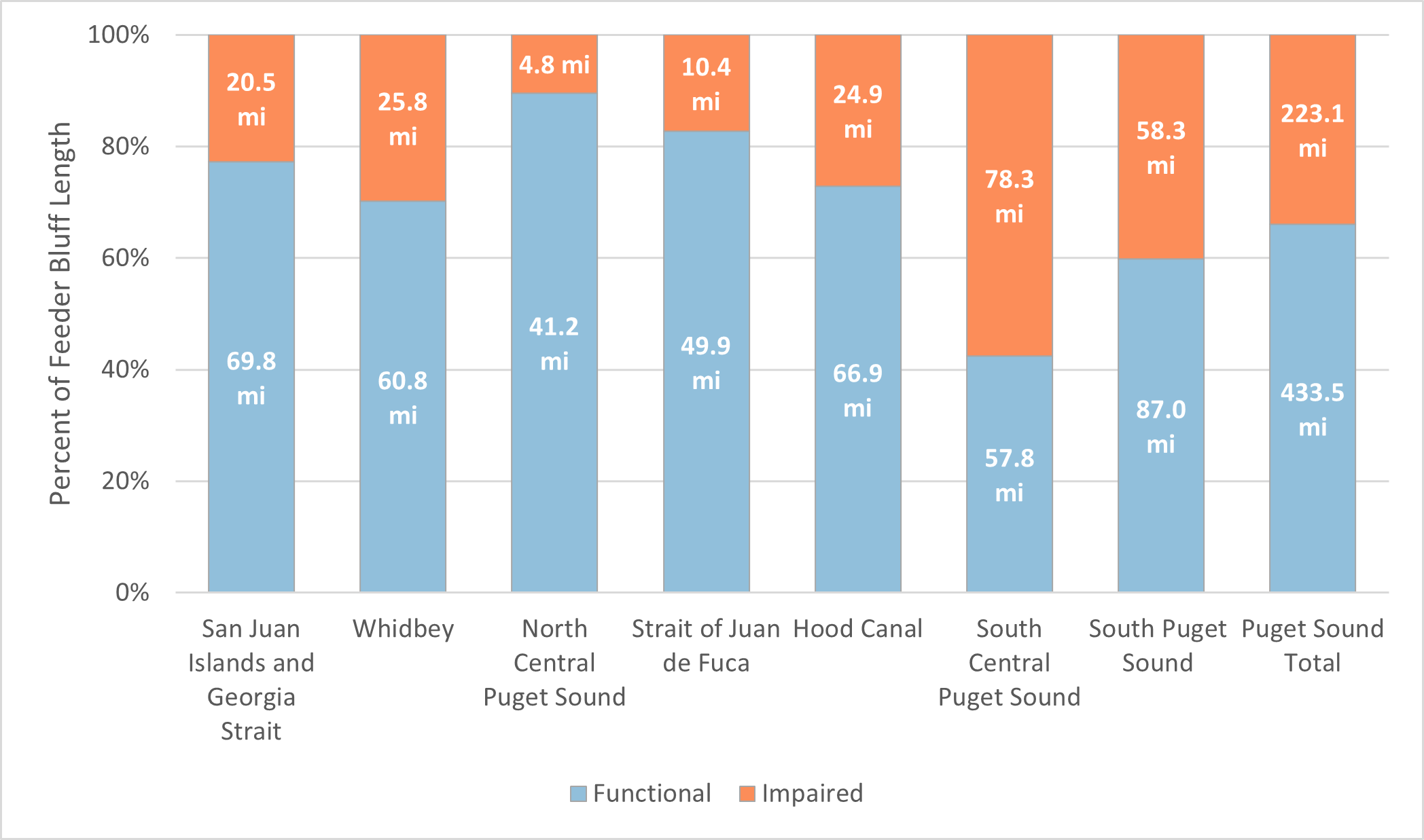 Figure 6. Length of degraded and improved feeder bluff function within a subset of Puget Sound.